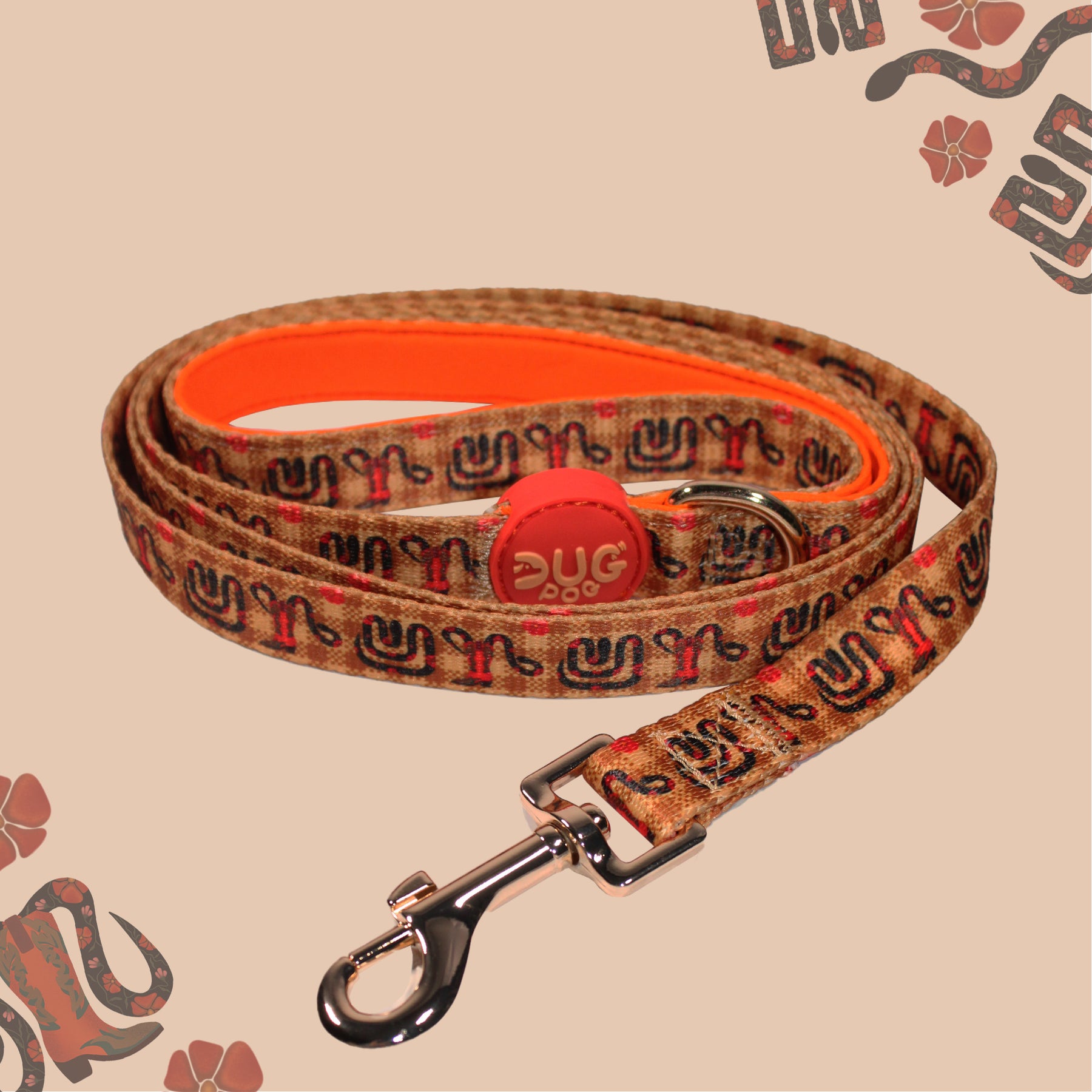 Cowboy Barker is a bold, country inspired design featuring cowboy boots and snakes for a rugged, adventurous look. Perfect for pups with a wild streak, this print brings a touch of the open range to every walk.